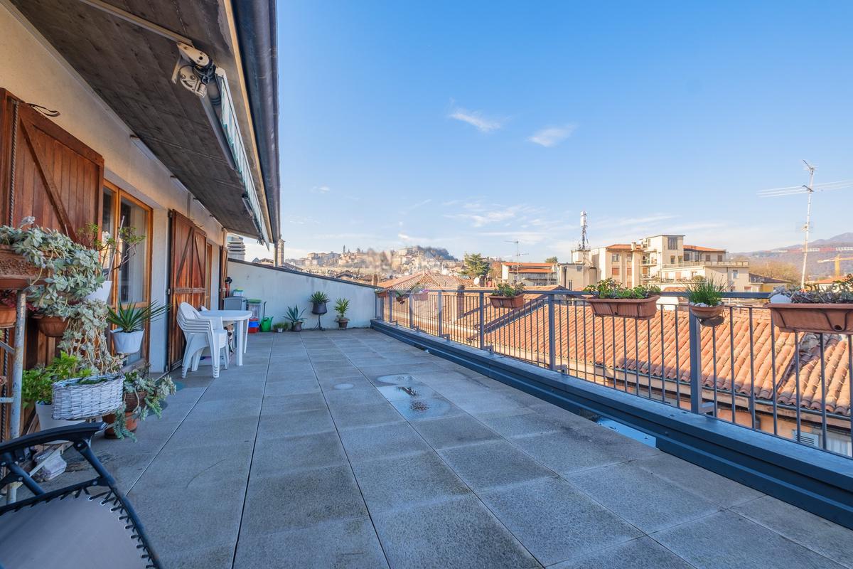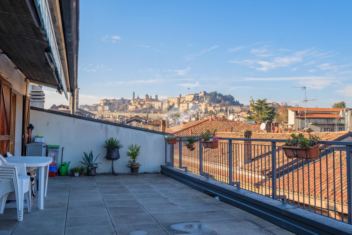 Nel cuore della storica Borgo Palazzo, prestigioso attico di 377 mq su due livelli con finiture originali e una vista esclusiva su Città Alta.